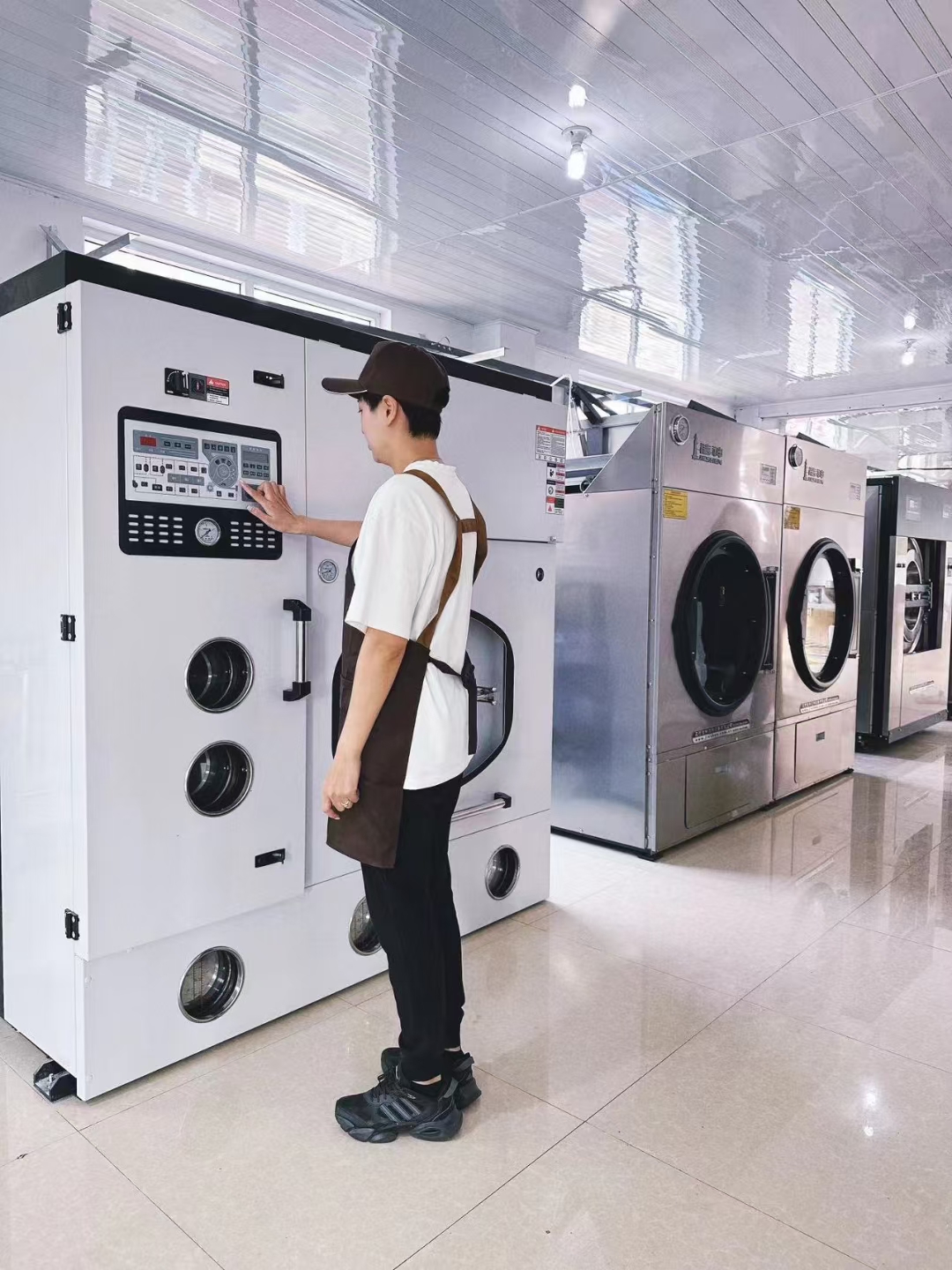 天津洗衣工廠店用戶柒喜洗護,使用三河潔神提供的干洗機(P220FDQP-C)一臺,16kg、30kg、50kg水洗機各一臺,50kg烘干機兩臺